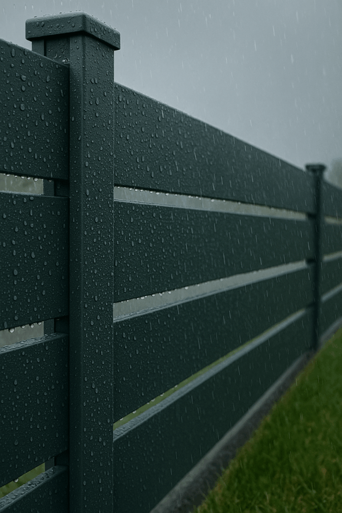 Pulverbeschichtete Aluminiumprofile, 1,80 m Höhe – klare Linien für maximale Privatsphäre im Garten.