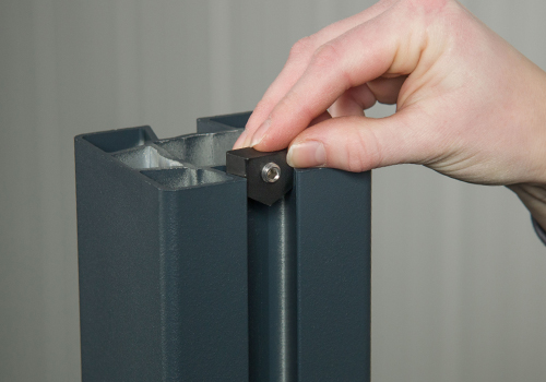Spannnutenstein einsetzen, gegen Pfosten und Füllung verschrauben.